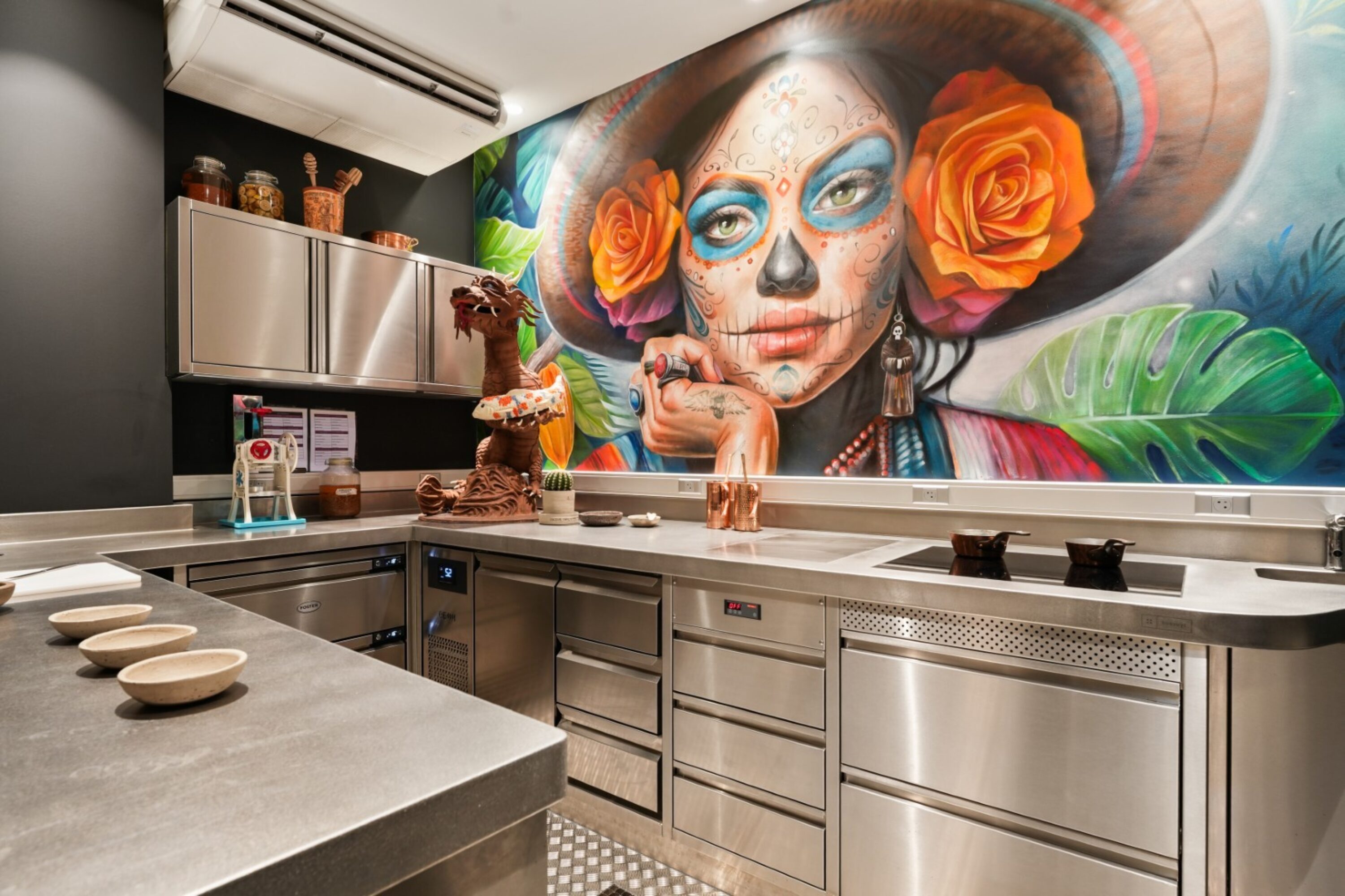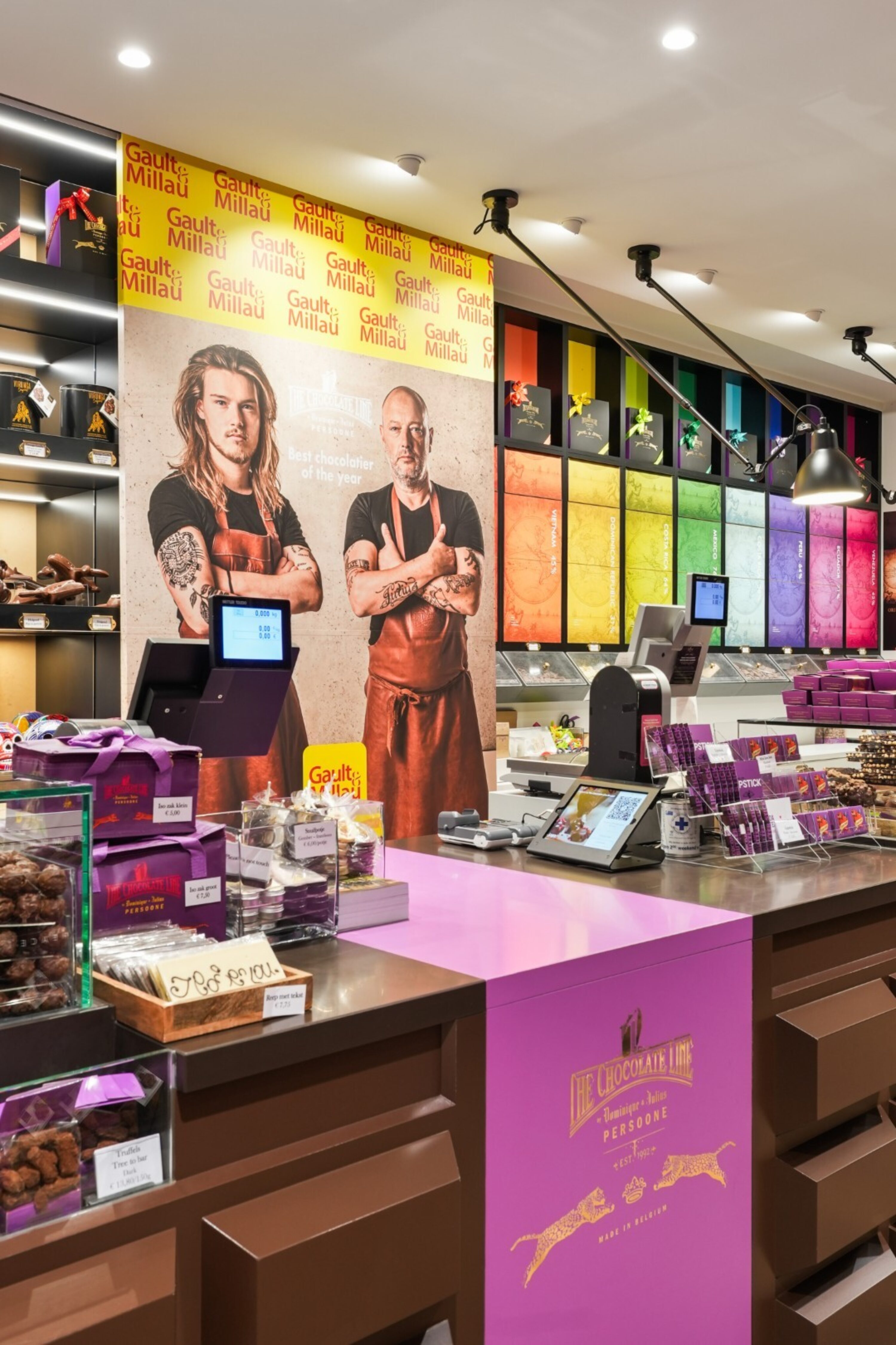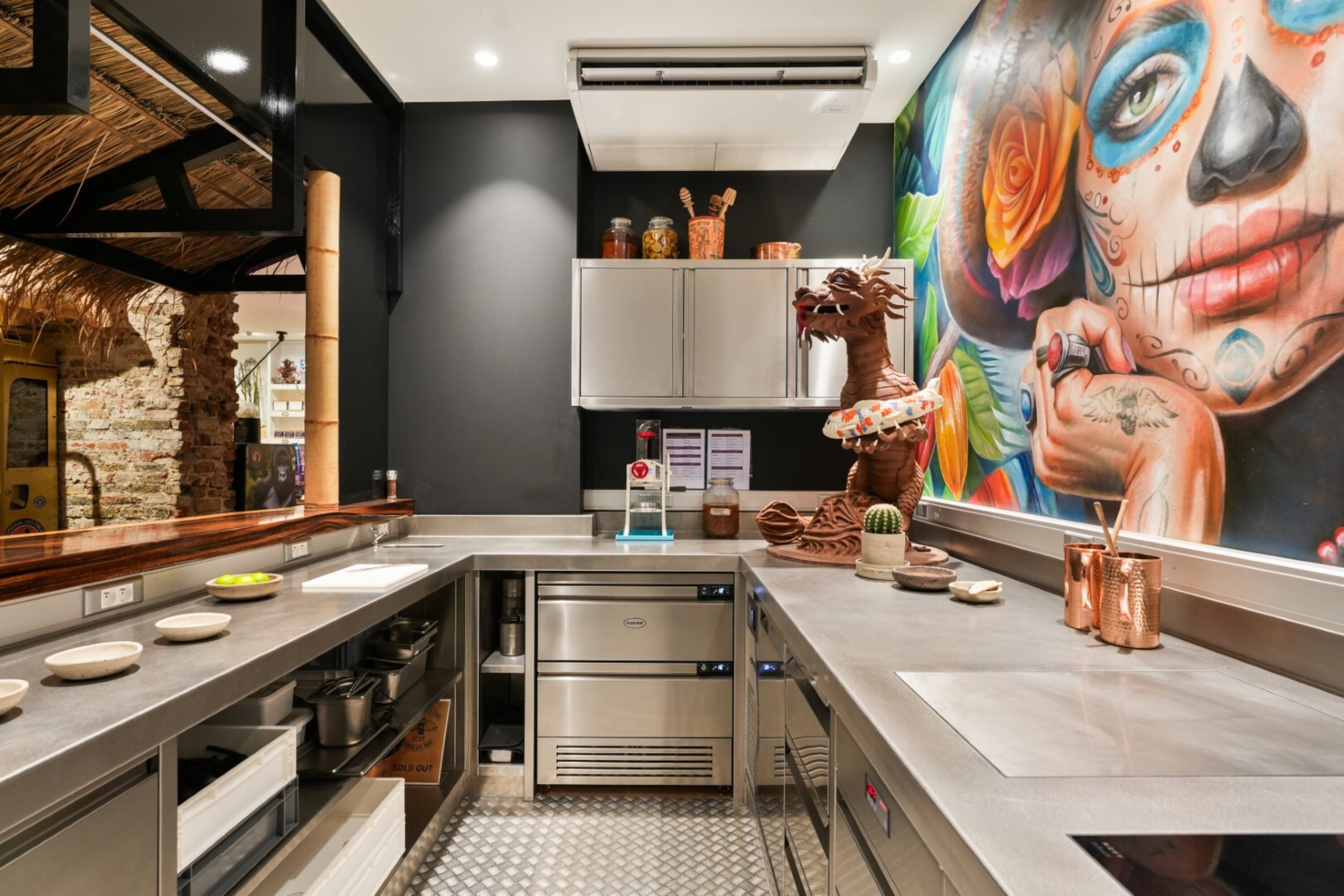 Tous les vendredis, samedis et dimanches, Julius & Dominique Persoone vous font découvrir leur concept Tree To Bar et vous servent de délicieux desserts au chocolat. Au Chocolate Bar, vous pouvez voir comment le chocolat prend vie : du torréfaction et du décorticage au conchage. La production est délibérément limitée, pour ceux qui aiment vraiment les saveurs pures. Nous avons eu le privilège d'installer la cuisine sur mesure en inox dans laquelle se déroule cette histoire unique, un lieu où se rencontrent le savoir-faire et la passion du goût.